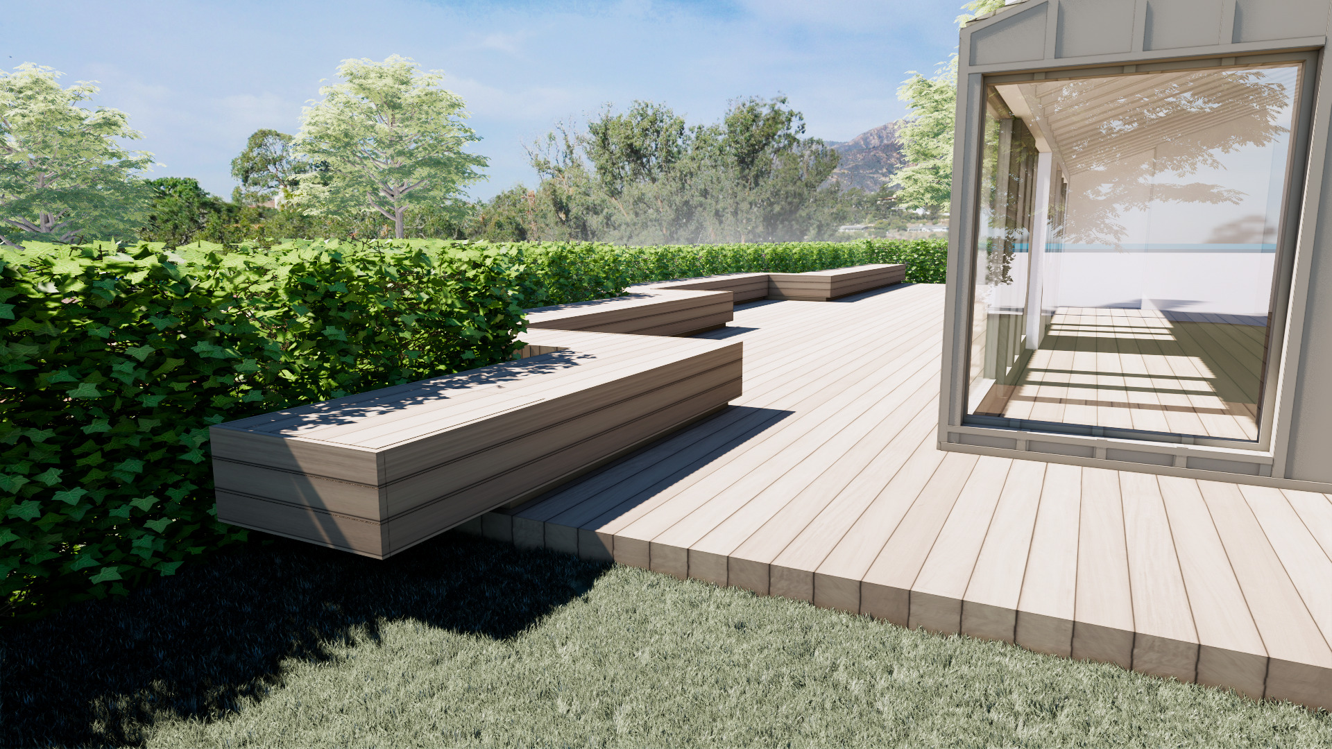 allowing the main house to view through to the trees beyond.