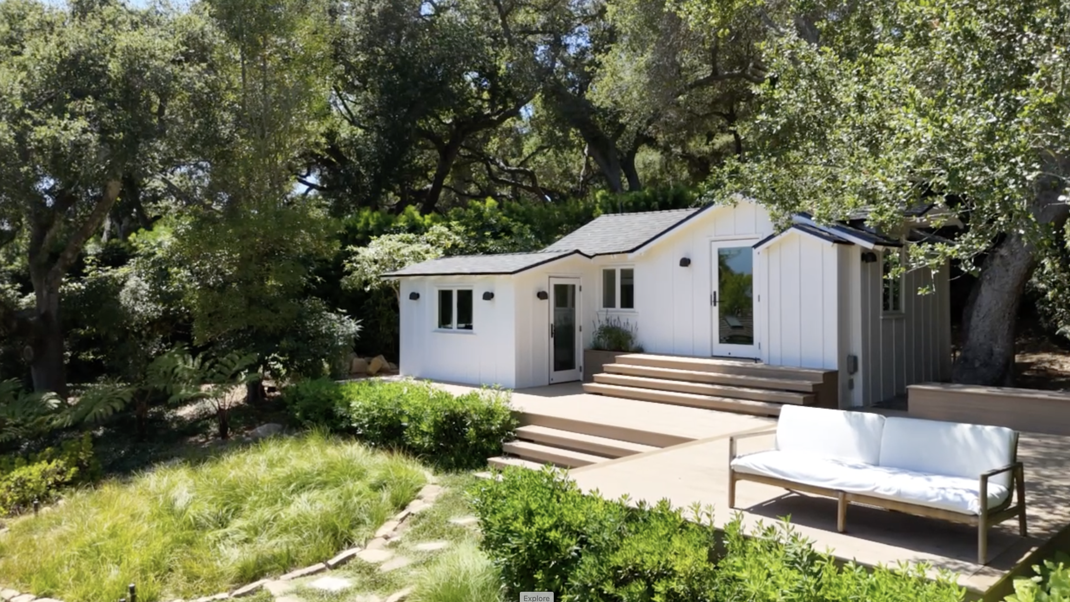 An existing cottage guesthouse structure, is updated as a new ADU, with a new large unifying deck with views out over the main house to the ocean.