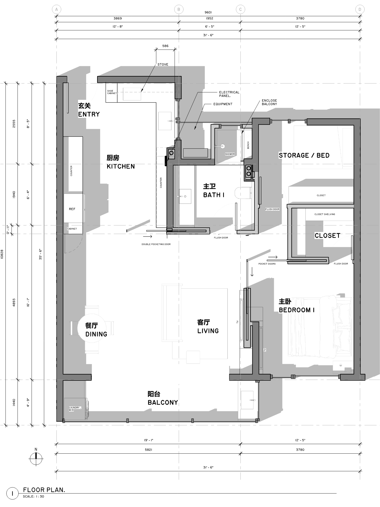 This project creates a modern home within a highrise in Taizhou. The layout is opened to preserve a sense of space and a clear visual connection from entry to city views. Entering through an enlarged kitchen, the plan expands into a living and dining area with an enlarged opening out to the balcony. The balcony is enclosed on each side with sliding doors, forming a thermal buffer while maintaining direct visual connection to the exterior.